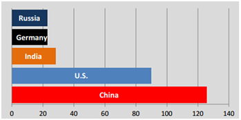图3 2022年国土安全和公共安全市场全球领先5大国家(十亿美元)