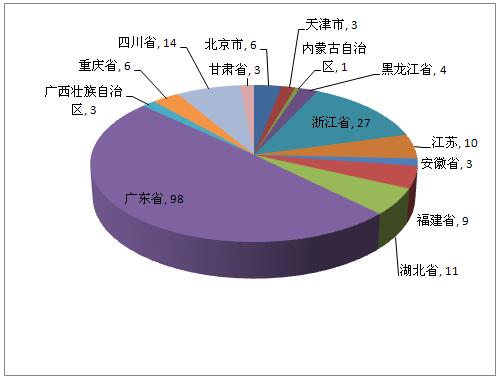 (三)获证企业的地域分布情况(198家企业,1961个产品)