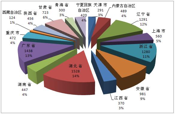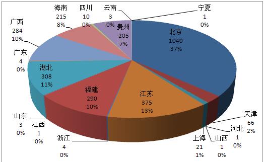 获得中国安全防范产品行业协会资质等级证书的安防工程企业概况(18个省市,2832家):