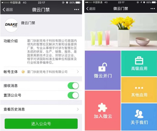 狄耐克微云门禁独一无二与微信无缝结合,不需要特殊的安装或多余设置;不需要安装APP,客户手机只要有微信应用即可;界面简洁、单一,只为开门而生;平台不收费,免费提供给物业使用;微信有多稳定狄耐克微云门禁就有多稳定;狄耐克902门口机只要软件升级就能接入,不需要增加硬件成本。