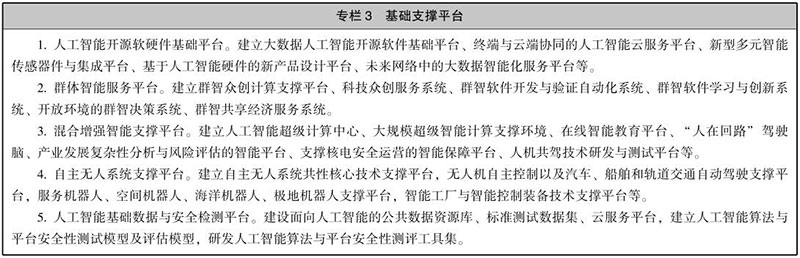 建设国家人工智能产业园。依托国家自主创新示范区和国家高新技术产业开发区等创新载体,加强科技、人才、金融、政策等要素的优化配置和组合,加快培育建设人工智能产业创新集群。