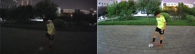 图3 普通摄像机与暖光全彩摄像机对比