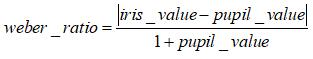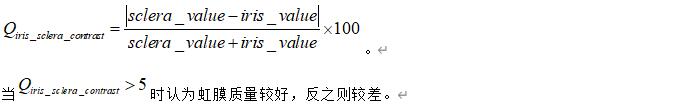 虹膜—瞳孔对比度是无量纲的,一般当 时认为虹膜质量较好。