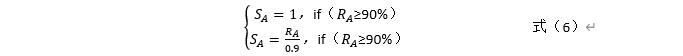 虹膜有效区域占比指标的质量分数SA计算方法如式(6)所示:
