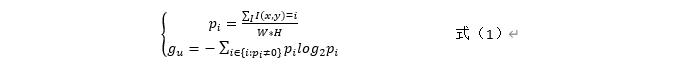 其中pi为分割后虹膜图像的灰度直方图信息,gu为灰度等级利用率。