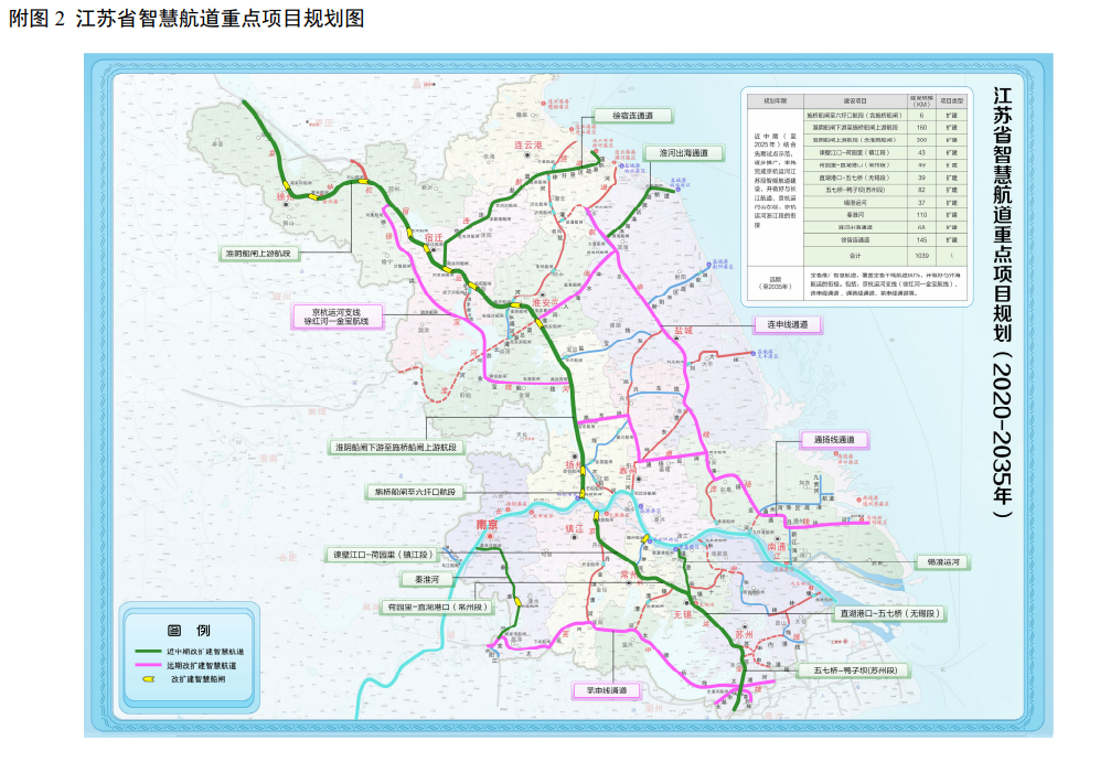 加快推进智慧航道示范工程建设。新增航道同步开展智慧航道建设,以推动京杭运河江苏段走在全国内河航运发展前列为重点,开展京杭运河江苏段全线智慧航道建设,构建航道全方位交通感知网络,推动伴随式信息服务,探索重点航段实现有人干预下的船舶自主航行示范。