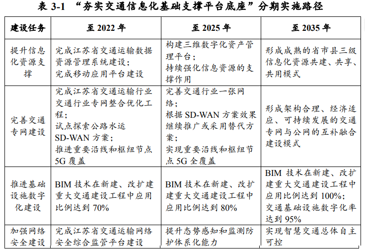 对照“夯实交通信息化基础支撑平台底座”任务,提出智慧交通强基工程。
