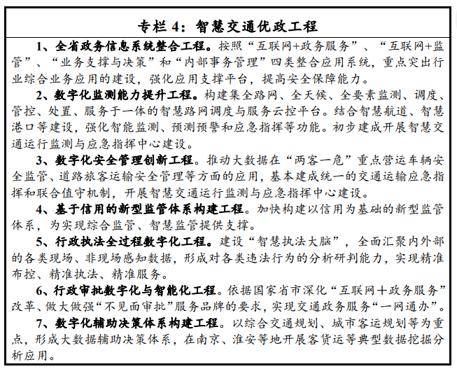 对照“加快推进行业治理数字化转型升级”任务,提出智慧交通优政工程。