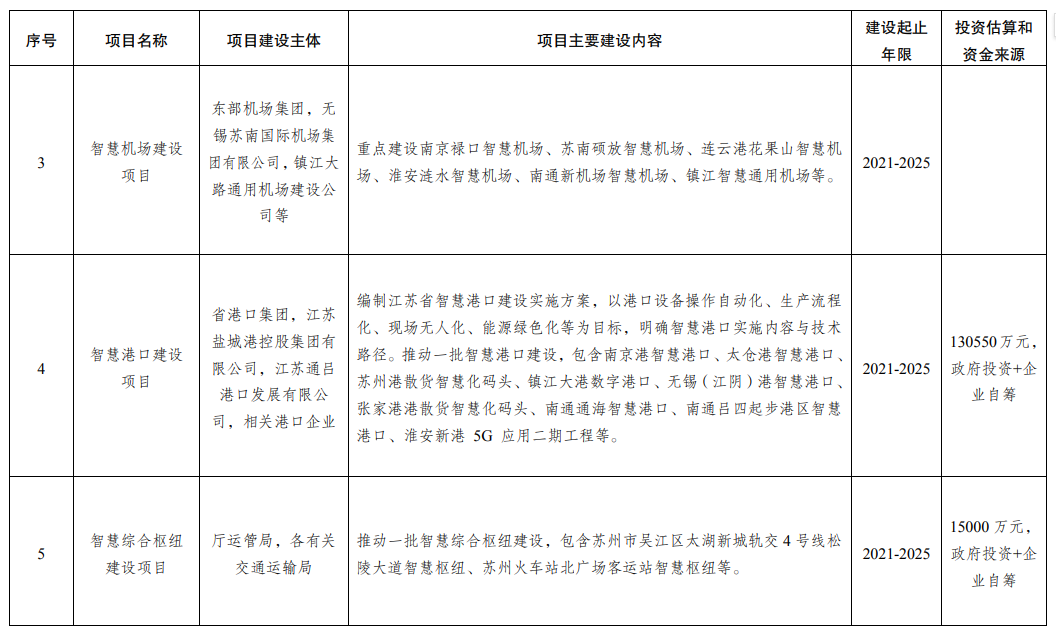 加快推进智慧综合枢纽示范工程建设。依托江阴站综合客运枢纽、沪苏湖铁路苏州南站、北沿江高铁南京北站、南通站、苏州市吴江区太湖新城轨交4号线松陵大道智慧枢纽、苏州火车站北广场客运站等新建和存量综合客运枢纽,开展智能化系统建设,实现智慧服务和智慧管理。